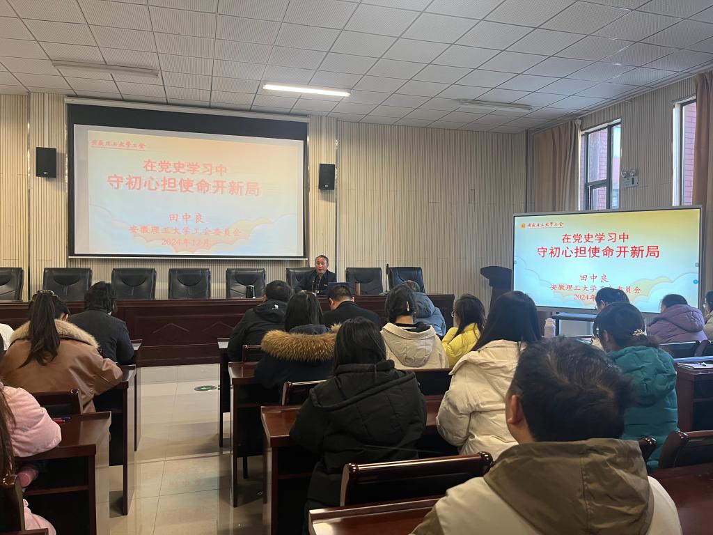开班典礼结束后,校工会主席田中良为全院党员作了题为《在党史学习中守初心担使命开新局》的专题辅导报告。