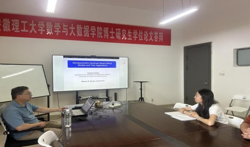 5月30日下午,应数大学院的邀请,美国加州大学圣巴巴拉分校王跃东教授在数大学院A221会议室作题为“Semiparametric Nonlinear Mixed Effects Models and Their Applications”的学术报告。学院相关专业研究生和本科生30余人现场认真聆听了学术报告。