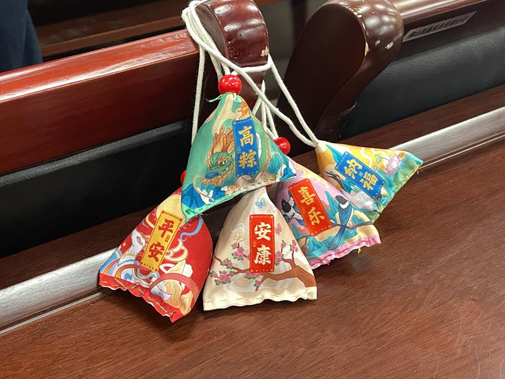此外,活动现场还设置了端午知识问答环节。最终,经过激烈角逐,评选出了一、二、三等奖,获胜的老师举起亲手制作的香囊,脸上洋溢着快乐的笑容。
