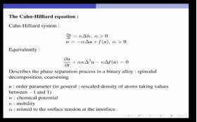 报告中,Miranville 教授首先回顾了经典 Cahn-Hilliard 方程的物理背景,随后重点介绍了带非线性源项模型的数学研究进展,围绕解的存在性、正则性、吸引子以及分离性质等核心问题展开,并比较了多项式势与对数势两类模型的差异。对于无源项的对数势情形,在一维和二维可证明严格分离,而三维目前仅能得到弱分离;当引入源项时,若要获得严格分离与唯一性,通常需要满足额外的符号条件、分解假设以及更高的正则性要求。最后,报告展示了该类模型在图像修复、肿瘤生长及生物组织乳酸浓度等问题中的应用。