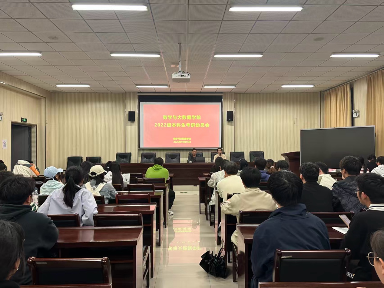 10月16日晚上,数学与大数据学院在明道楼一楼报告厅召开2026届学生考研动员会暨冲刺辅导。党委副书记储兆晶,许峰教授及毕业班辅导员、全体考研学生参会。会议由储兆晶主持,许峰教授应邀主讲。