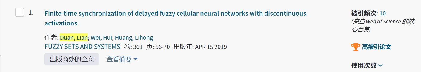 近日,数大学院青年教师段炼副教授2019年4月以安徽理工大学为第一单位发表在《Fuzzy Sets and Systems》杂志上的学术论文“Finite-time synchronization of delayed fuzzy cellular neural networks with discontinuous activations”,2019年11月被遴选为ESI数据库高被引论文。《Fuzzy Sets and Systems》创刊于1978年,是模糊系统与数学领域最著名的国际杂志之一,为JCR、中科院分区双一区期刊。