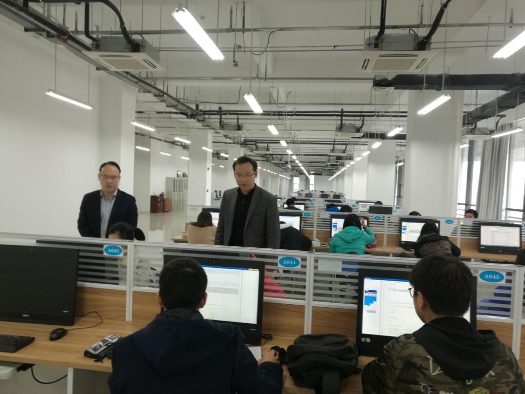 教务处和数大学院工作人员在机考现场(摄影:房明磊)
