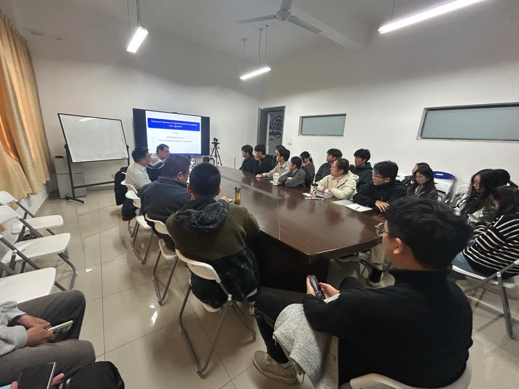 本次报告内容丰富、生动有趣,受到参会师生广泛好评。郭旭教授就高维数据理论和相关感兴趣的话题与师生进行了探讨和交流。此次报告会拓展了学生们的学术视野,开阔了学生们的眼界,激发了学生们学习兴趣。