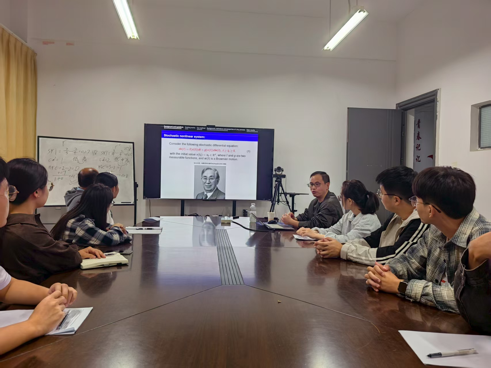 在报告中,朱全新教授深入浅出地介绍了Lévy过程的基本理论与性质,并聚焦于随机非线性时滞系统的稳定性与控制问题。他系统梳理了当前学界在该领域的研究进展,指出传统连续反馈与采样控制方法在实际应用中的局限性,并提出了一种更具现实意义的事件触发控制策略。该方法不仅突破了对全局Lipschitz条件的依赖,还有效应对了系统中的跳跃扰动与时滞因素,展示了其在金融数学、神经网络建模等复杂系统中的广泛应用前景。