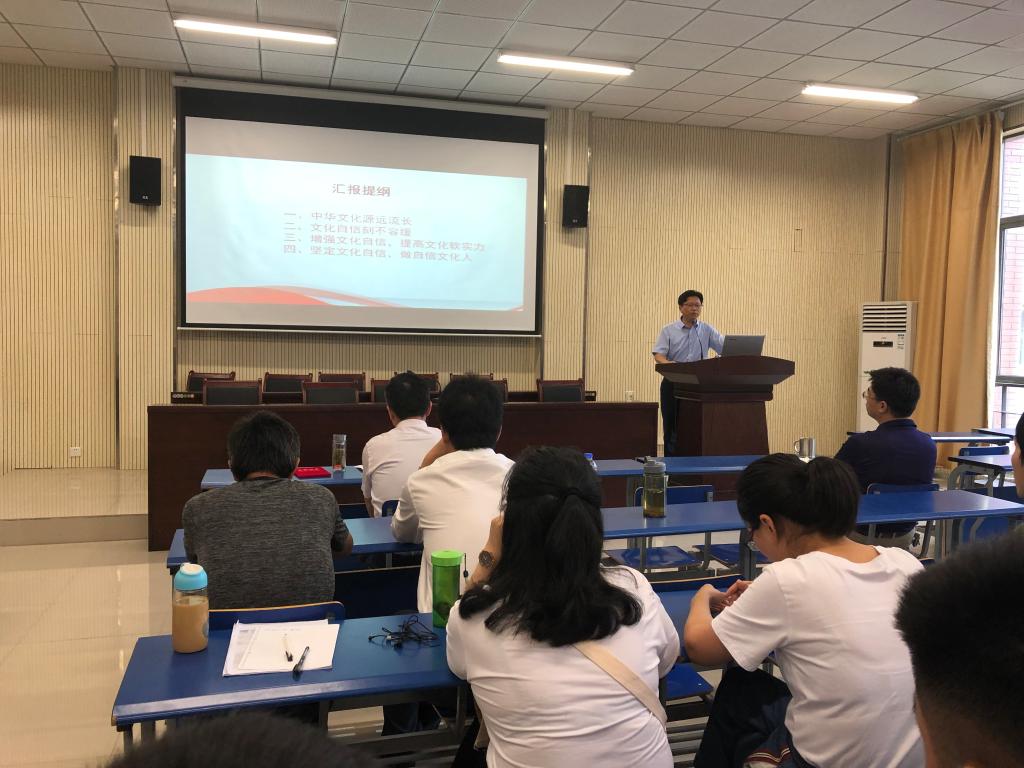 为加深党员对坚定文化自信的认识,提升文化素养,学院邀请校监察处处长朱炜讲授了题为《坚定文化自信,做自信的文化人》的党课。他从中华文化源远流长、文化自信刻不容缓等四个方面阐述了增强文化自信的重要性和必要性,以鲜活的事例论证了优秀传统文化的魅力。通过报告,使党员们更加深刻地认识到,中华民族素有文化自信的气度,中华文明历经万般淘洗,闪耀出绚烂多彩的光芒,成为古代文明中唯一没有中断而延续至今的文明。新时代激活中华优秀传统文化内在的强大生命力,需要我们坚定文化自信,创造性转化,创新性发展,需要我们薪火相传,代代守护。