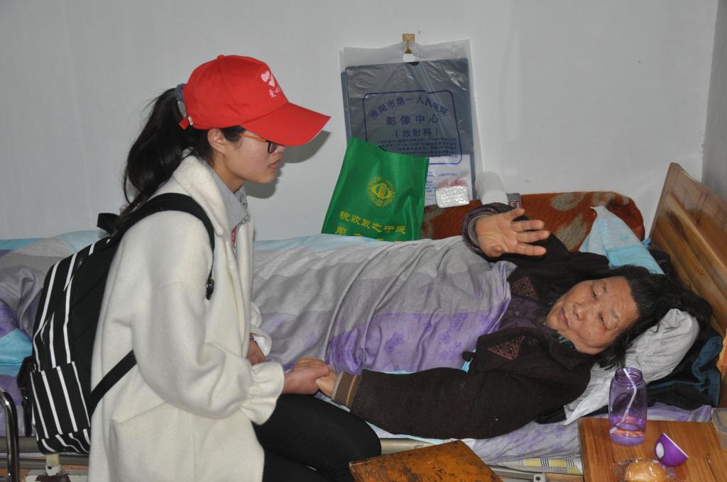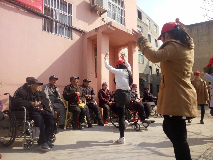 早上8:00,志愿者们带着“服务之心、关爱之心”来到桃园居老年公寓,到达敬老院后,志愿者们将食品发放到老人手中,部分志愿者或蹲或站在老人身边一边跟老人谈心一边为老人捶捶肩揉揉背,气氛十分温馨、融洽。之后,一些志愿者为老人表演唱歌、跳舞等活动,精彩纷呈的节目让老人们开怀大笑。接着一些志愿者主动帮助老人整理床铺,打扫房间卫生,让老人们流下了激动地泪水。最后志愿者们集体为老人们祈福,大家的欢声笑语充满了整个敬老院。