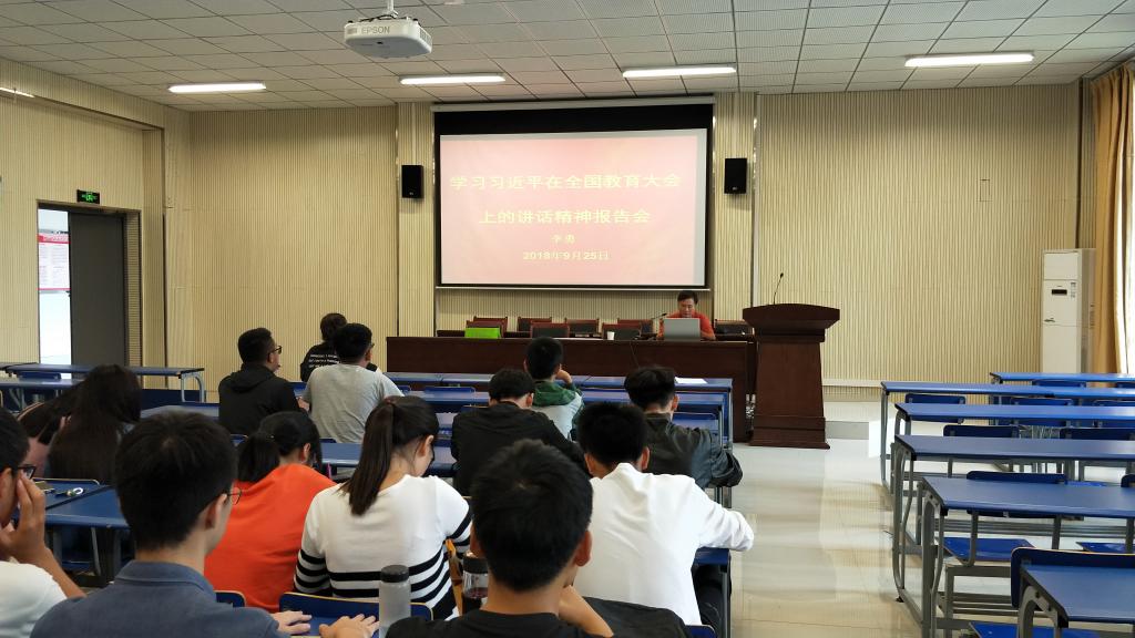2018年9月25日,数大学院在报告厅开展学习习近平总书记在全国教育大会上的讲话精神报告,院党委副书记李勇主讲,全体本科生党员参加本次报告。