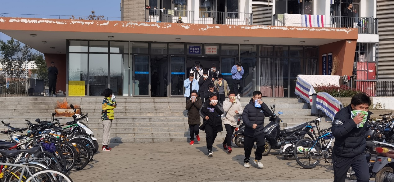 此次应急疏散演练的主要内容是模拟发生火灾后,学生在宿舍如何自救逃生,熟悉消防器材的使用和如何扑灭初期火灾。演练现场,随着警报声响起,在疏散引导员的引导下,同学们用湿毛巾捂住嘴巴,快速有序地从宿舍到达应急疏散集合点集结,校消防科彭广峰老师对疏散演习进行了点评。