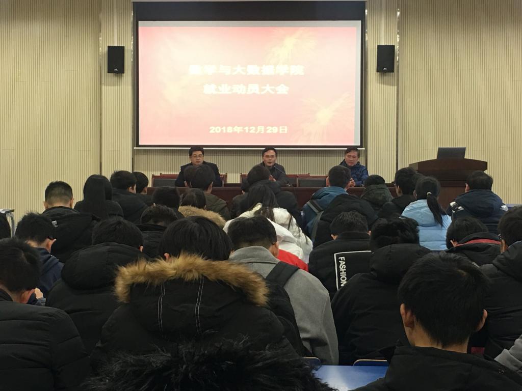 12月29日下午,数大学院在明道楼一楼报告厅召开2019届毕业生就业动员会。院党委书记冯定昌、院长方贤文、副书记李勇及毕业班辅导员、全体毕业生参会。会议由院党委副书记李勇主持。