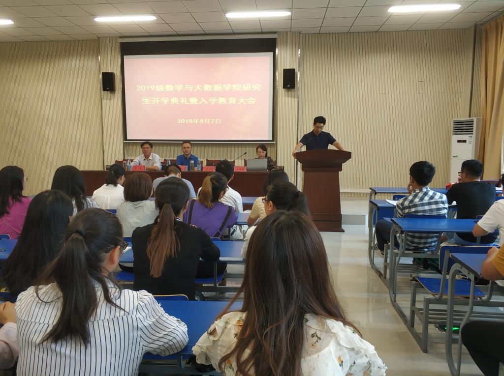 9月7日上午,数学与大数据学院在学院一楼报告厅举行了2019级研究生新生开学典礼暨入学教育开班仪式。院系领导、导师代表、研究辅导员及研究生新生参加了典礼。