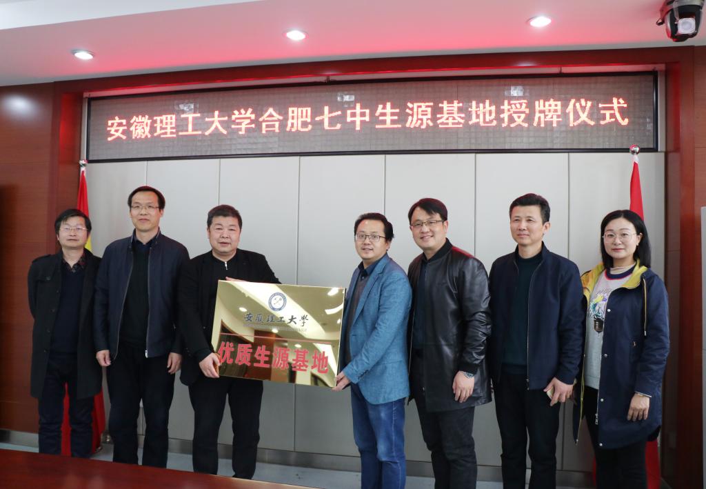赵前进代表学校与两所中学签订了《安徽理工大学优质生源基地共建协议书》,并举行了优质生源基地授牌仪式。(撰稿、核稿:数大学院 汤圣军、李德权)