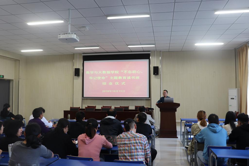 10月11日下午,数大学院在院报告厅举办主题教育读书班结业式。结业式由学院党委书记冯定昌主持。学院党委领导班子成员、院全体师生党员参加了结业式。