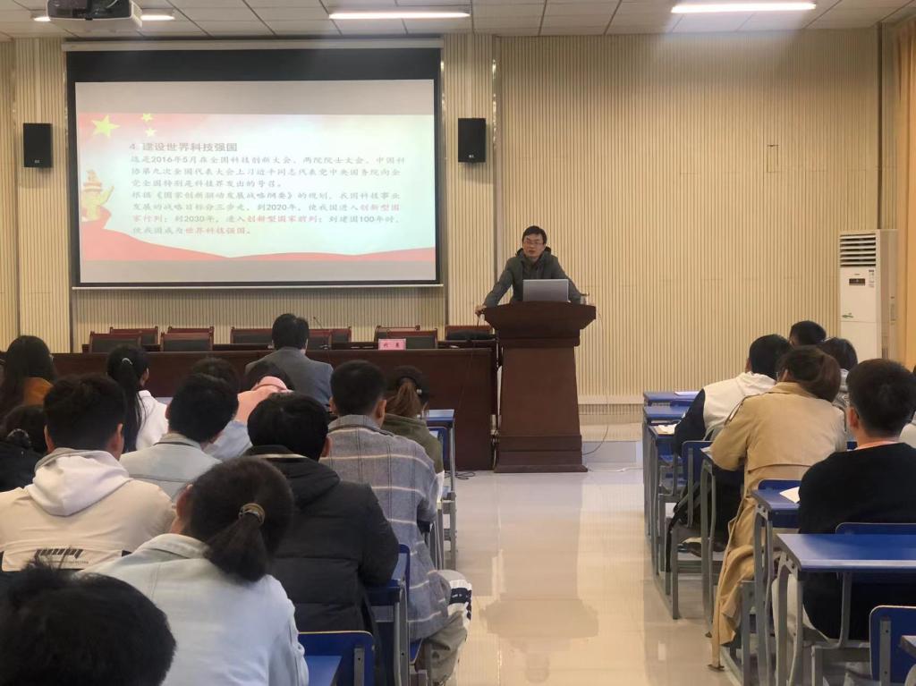 代亮老师以《新时代党的科技创新思想》为题,从时代背景、基本内容及实践路径这三个方面阐述了新时代党的科技创新思想,重点阐明了习近平新时代科技创新思想的核心要义。他思路清晰、条理清楚,从“科技创新是引领发展的第一动力、坚定不移走中国特色的自主创新道路”,到“人才是创新的根基、建设世界科技强国”,娓娓道来,引人入胜,使学院师生党员对党的科技创新思想有了更加深入的认识,坚定了教师党员用党的创新理论铸魂育人的信心,坚定了学生党员自觉传承党的宝贵精神财富、不断学习科学知识的决心。