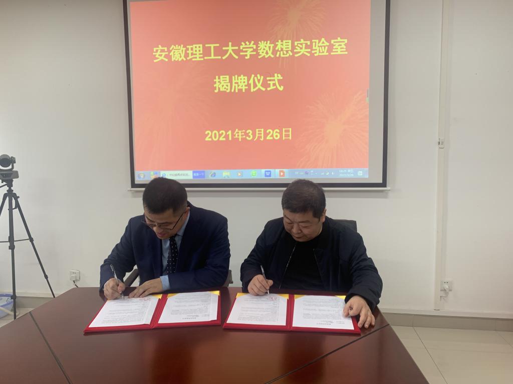 3月26日下午,数学与大数据学院产学研签约仪式暨“安徽理工大学数想科技实验室”揭牌仪式在学院会议室举行。校党委常委、校党政办公室主任、校友会办公室主任王先江,08届信计专业校友、安徽数想科技有限公司总经理陈东来一行,16届机设专业校友、合肥易知谷知识产权运营有限公司法定代表人林明,以及数学与大数据学院负责人出席了签约仪式。仪式由数大学院党委书记冯定昌主持。