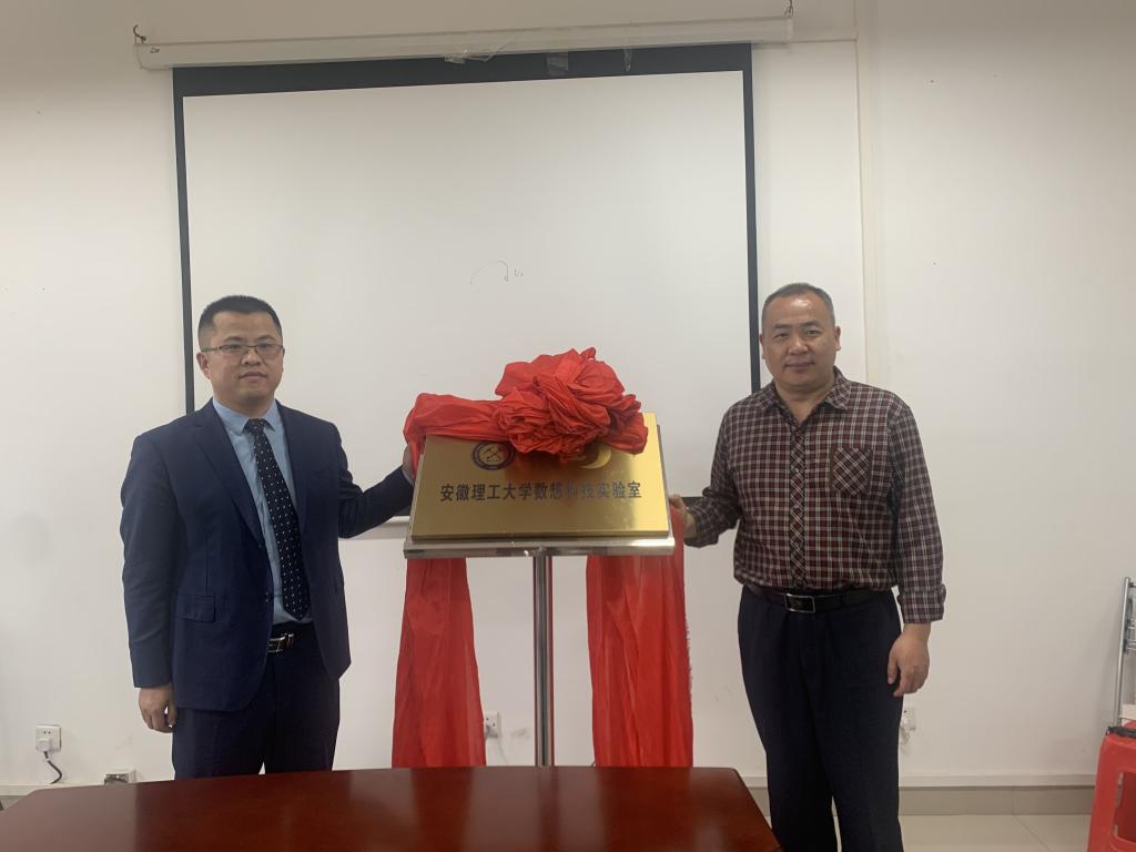 校党委常委、校党政办公室主任、校友会办公室主任王先江与陈东来为“安徽理工大学数想科技实验室”揭牌。(撰稿、核稿:数大学院 王晓悦 冯定昌)