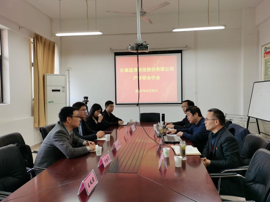 4月23日上午,安徽超清科技股份公司科技部部长张崴一行4人来数大学院学院开展校企合作交流。学院在明道楼A204会议室举行座谈会,学院院长赵前进主持会议。