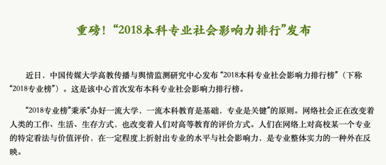 中国科学网发布的“2018年本科专业社会影响力排行”中,我校信息与计算科学专业排名全国第八。
